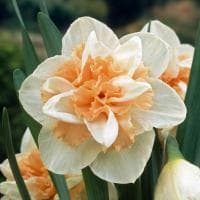 Махровый нарцисс Дельнашо станет фаворитом тех, кто любит легкость и воздушность, элегантность и ненавязчивость. Его огромные соцветия – это искристо-белые округлые лепестки, нежно обрамляющие роскошную светло-абрикосовую сердцевину.